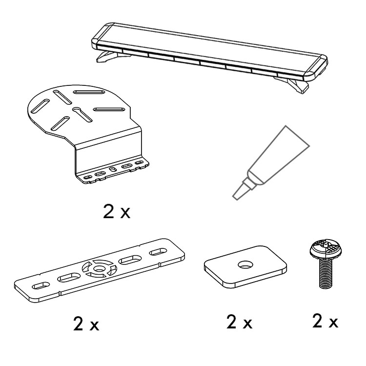 Huomaa, että sarjan mukana toimitetut kiinnitysmateriaalit on tarkoitettu ruuvikiinnitykseen. Lattia- ja seinäkiskojen autoa rikkomattomat kiinnikkeet toimitetaan erikseen.