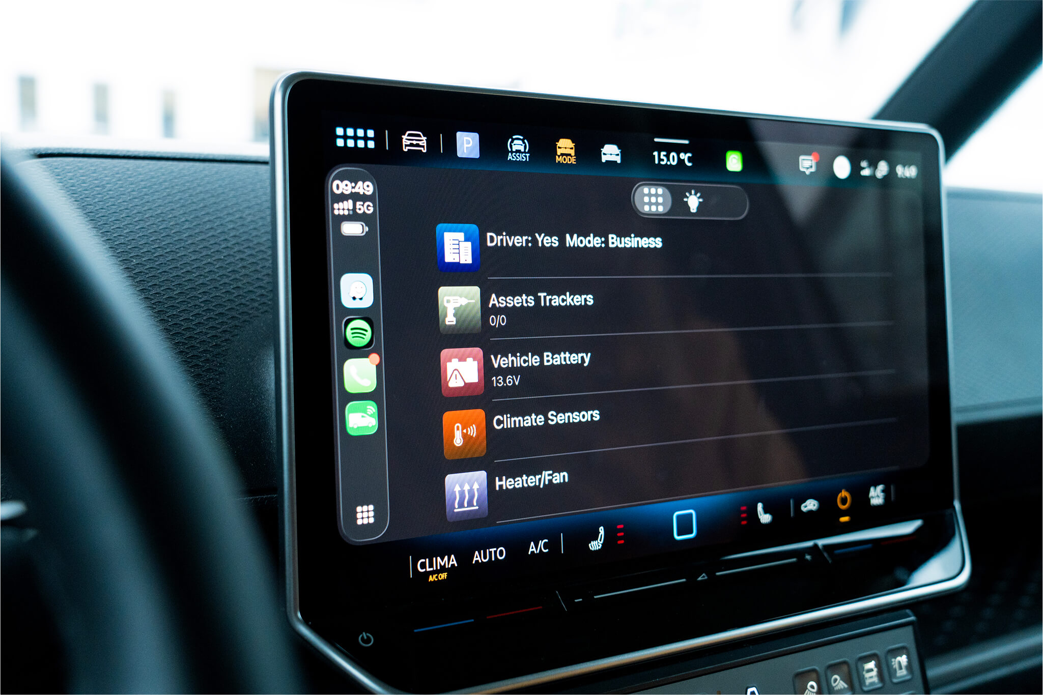 Tämän uuden integraation myötä käyttäjät voivat hallita ja seurata Modul-Connect-järjestelmäänsä suoraan ajoneuvon näytöltä. Sovellus pysyy käyttäjän älypuhelimessa, mutta se peilataan auton kojelautanäytölle. Näin järjestelmää voi käyttää reaaliaikaisesti ilman puhelimen käsittelyä, mikä lisää turvallisuutta, käyttömukavuutta ja tehokkuutta tien päällä.