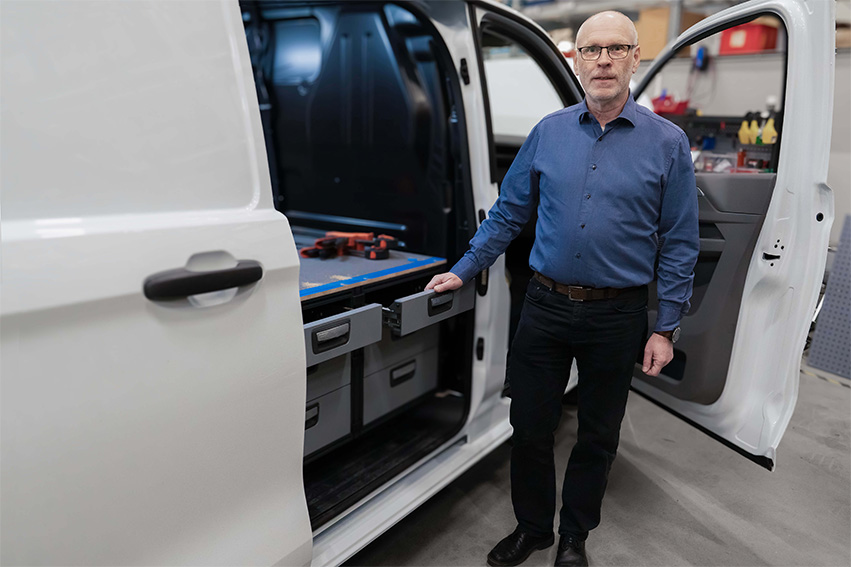 Anders Carlsson, Modul-Systemin tekninen johtaja, on työskennellyt autoteollisuuden tuotekehityksessä 1990-luvun alkupuolelta lähtien ja Modul-Systemillä vuodesta 2000. Hänellä on vuosikymmenien kokemus ajoneuvojen sisustussuunnittelusta ja tuotesuunnittelusta, ja hän on erikoistunut kestävien, kevyiden ja ympäristöystävällisten hyllystöratkaisujen kehittämiseen hyötyajoneuvoille.