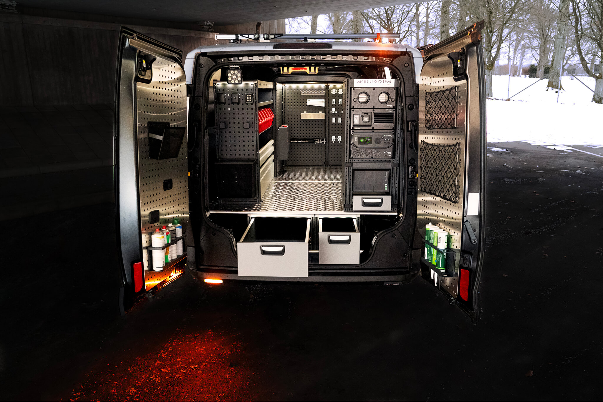 Modulaariset hyllyjärjestelmämme ovat suunniteltu sopimaan täydellisesti ajoneuvoon, auttaen sinua hyödyntämään käytettävissä olevan tilan parhaalla mahdollisella tavalla, samalla kun työkalut ja laitteet pysyvät järjestyksessä, turvassa ja helposti saatavilla. Kestävien lattiaratkaisujen ja käytännöllisten kattotelineiden avulla voit rakentaa täydellisen, työtehtäviäsi tukemaan räätälöidyn kokonaisuuden.