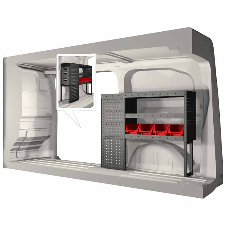 Kaluste-ehdotelmat on suunniteltu sopimaan optimaalisesti ajoneuvoon niin, että kaluste on sekä mahdollisimman toimiva että turvallinen. Kaluste-ehdotelmat on kehitetty ammattikäyttöön täyttämään eri liiketoiminta-alueiden tarpeet huoltotehtävissä. Kaikki hyllyt on varustettu kumimatoilla ja laatikot pitävät sisällään vaahtomuovilevyt. Kaluste-ehdotelmat pitävät sisällään myös kaikki asennustarvikkeet.