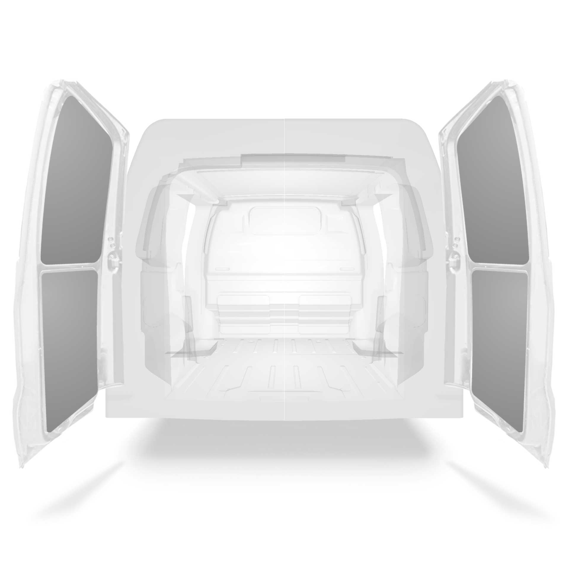 Kevyt takaoven paneeliverhous Citroën Jumpy / Peugeot Expert / Toyota ProAce, jossa on kaksoisovet. Oviverhoukset on suunniteltu antamaan sisäpuolelle ammattimainen ilme, ne suojaavat autoa ja on helppo pyyhkiä puhtaaksi.