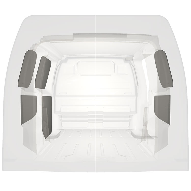 Kevyt sisäseinien paneeliverhous Citroën Jumpy / Peugeot Expert / Toyota ProAce, jossa on sivuovi oikealla. Verhouspaneelimme luovat valoisan ja miellyttävän työympäristön, ja ne on helppo pyyhkiä puhtaaksi.