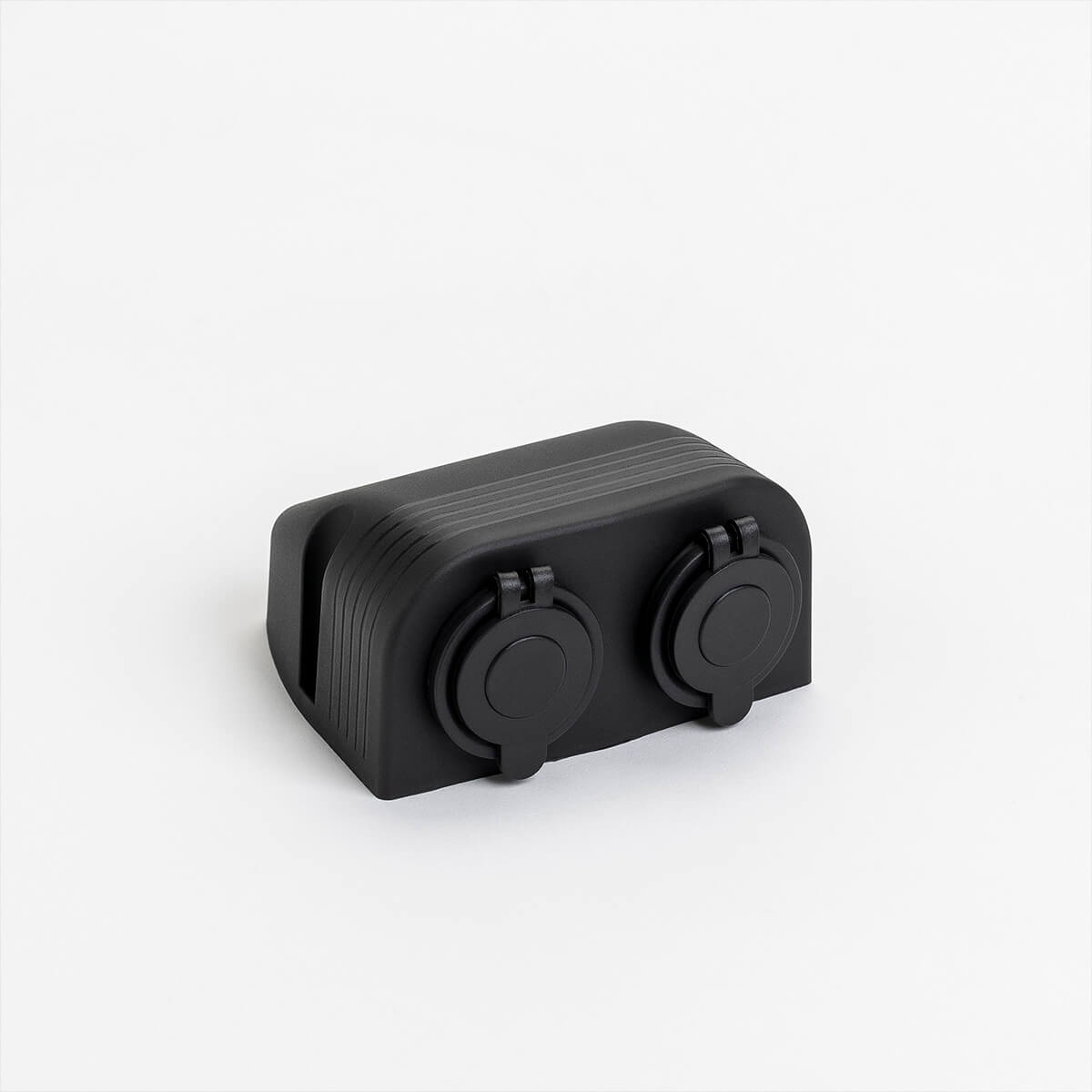 12V double power socket with surface mounted housing. Comprises of two power sockets.