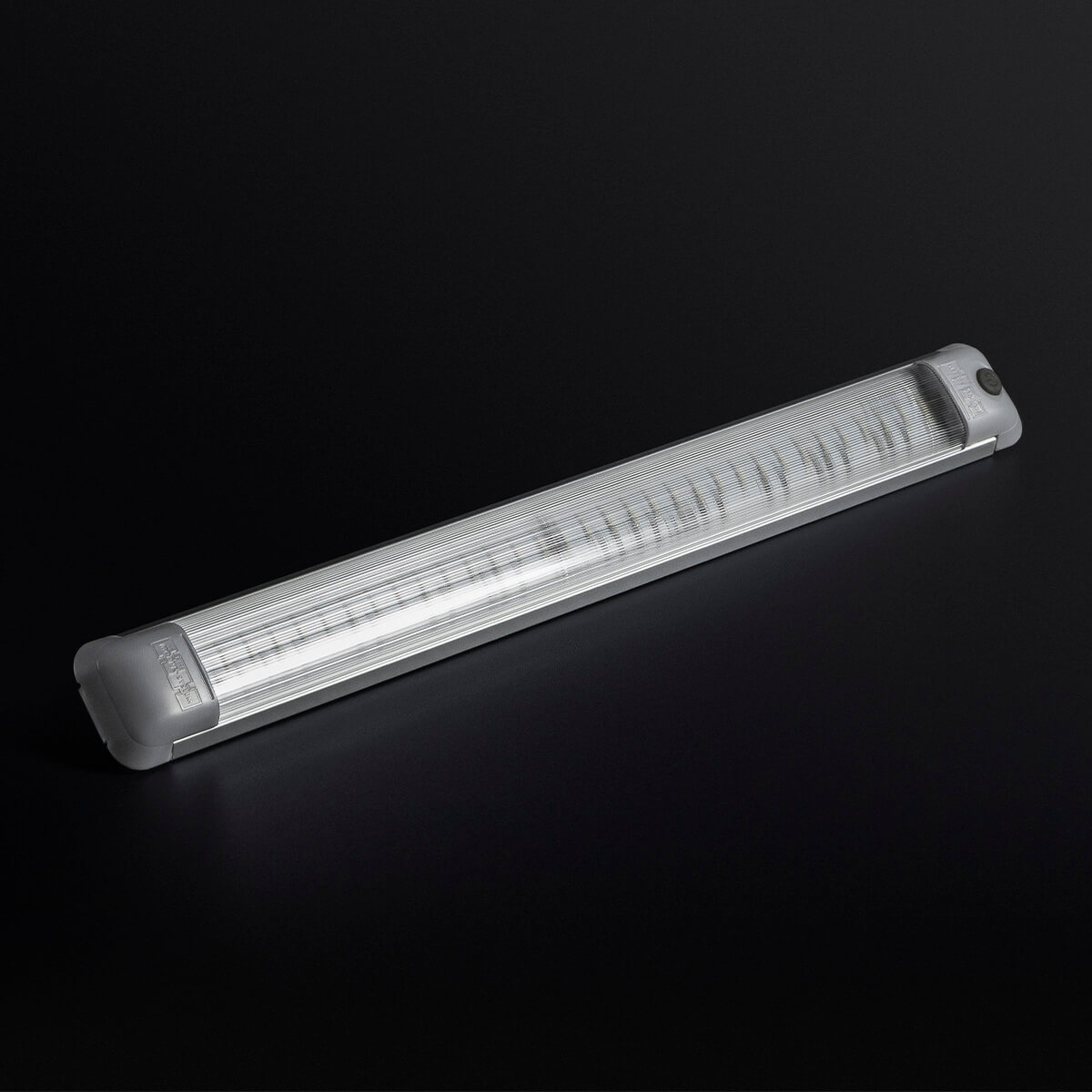 The LED light has a robust design with an aluminum rail, and a polycarbonate cover. Easily mounted on the roof of the vehicle or over a workbench using screws/rivets or adhesive tape/glue.