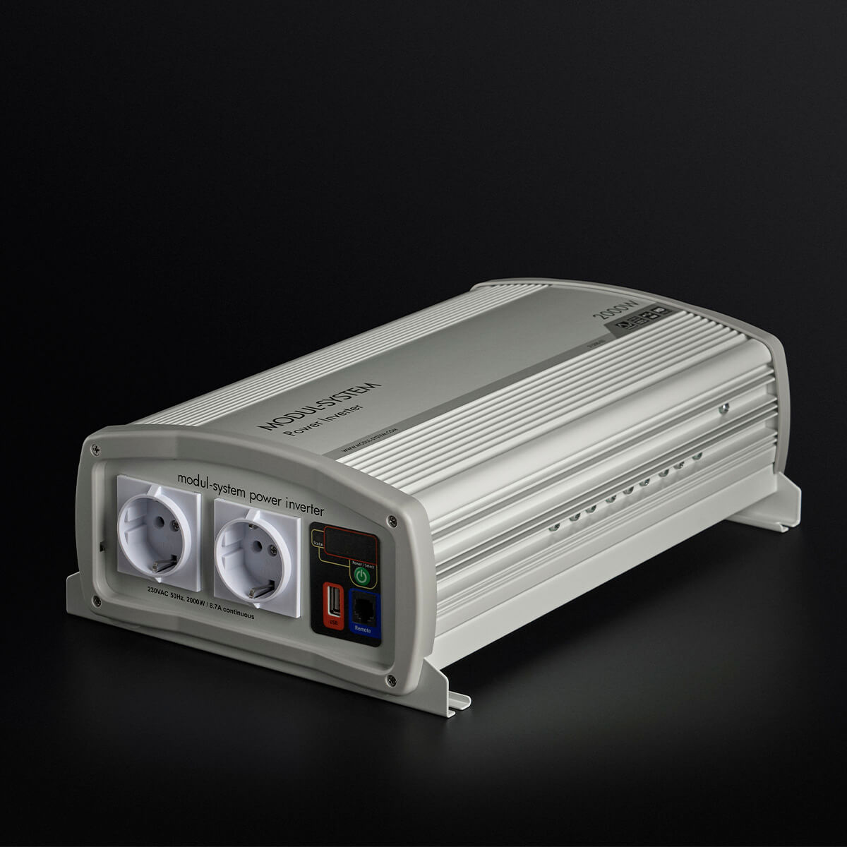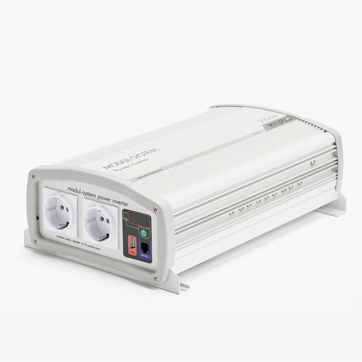Siniaaltoinvertteri, joka muuntaa akun tasajännitteen vaihtojännitteeksi. Invertteri on CE-ja E-merkitty ja testattu sähkömagneettisen yhteensopivuuden (EMC) osalta.