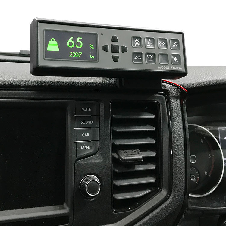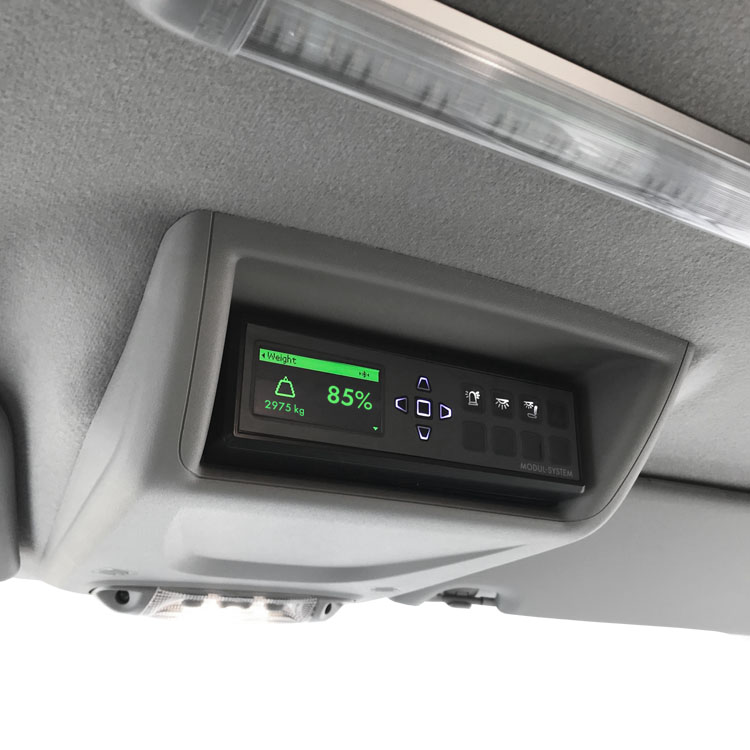 OLED-näytöllä varustettu kaukosäädin, joka on suunniteltu sopimaan ajoneuvon ohjaamoon. Taustavalaistujen kytkimien avulla kuljettaja voi helposti nähdä, mitkä lisävarusteet on kytketty päälle.