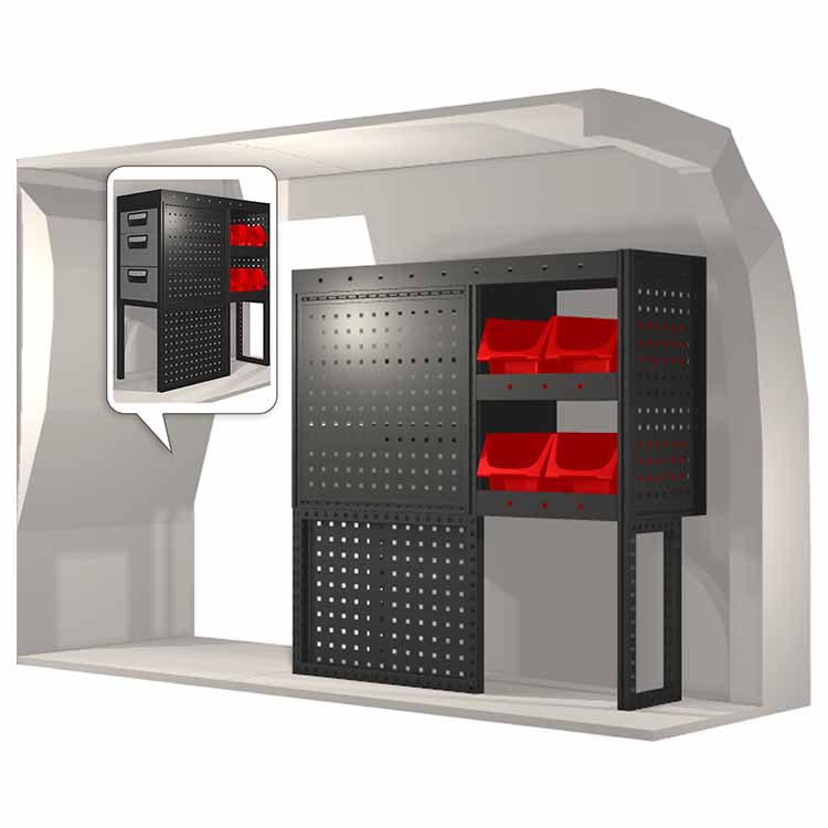 Kaluste-ehdotelmat on suunniteltu sopimaan optimaalisesti ajoneuvoon niin, että kaluste on sekä mahdollisimman toimiva että turvallinen. Kaluste-ehdotelmat on kehitetty ammattikäyttöön täyttämään eri liiketoiminta-alueiden tarpeet huoltotehtävissä. Kaikki hyllyt on varustettu kumimatoilla ja laatikot pitävät sisällään vaahtomuovilevyt. Kaluste-ehdotelmat pitävät sisällään myös kaikki asennustarvikkeet.