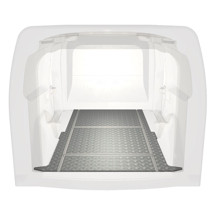 Kevyissä ja kestävissä Opel Combo / Fiat Doblò tarkoitetuissa lattioissa on luistamaton alumiinikulutuspinta ja kuormakiskot (pitkittäiset ja poikittaiset) kalusteiden ja muiden lisävarusteiden turvallista ja nopeaa asennusta varten.