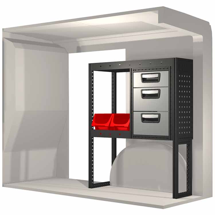 Kaluste-ehdotelmat on suunniteltu sopimaan optimaalisesti ajoneuvoon niin, että kaluste on sekä mahdollisimman toimiva että turvallinen. Kaluste-ehdotelmat on kehitetty ammattikäyttöön täyttämään eri liiketoiminta-alueiden tarpeet huoltotehtävissä. Kaikki hyllyt on varustettu kumimatoilla ja laatikot pitävät sisällään vaahtomuovilevyt. Kaluste-ehdotelmat pitävät sisällään myös kaikki asennustarvikkeet.