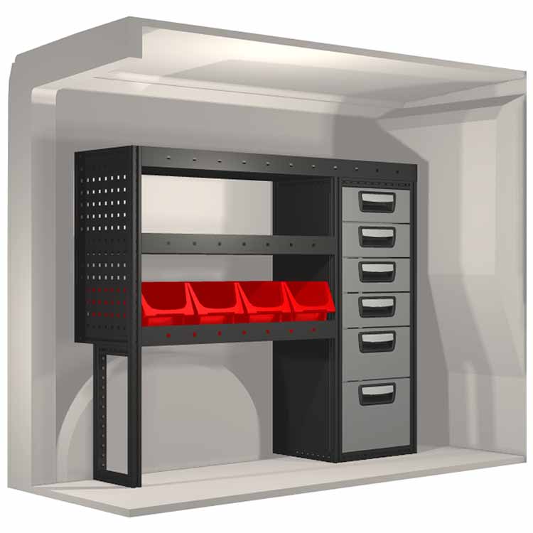 Kaluste-ehdotelmat on suunniteltu sopimaan optimaalisesti ajoneuvoon niin, että kaluste on sekä mahdollisimman toimiva että turvallinen. Kaluste-ehdotelmat on kehitetty ammattikäyttöön täyttämään eri liiketoiminta-alueiden tarpeet huoltotehtävissä. Kaikki hyllyt on varustettu kumimatoilla ja laatikot pitävät sisällään vaahtomuovilevyt. Kaluste-ehdotelmat pitävät sisällään myös kaikki asennustarvikkeet.