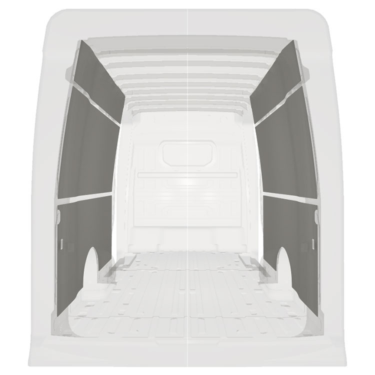 Kevyt valmiiksi leikattu sisäseinien paneeliverhous Volkswagen Crafter / MAN TGE , jossa on kaksoissivuovet. Verhouspaneelimme luovat valoisan ja miellyttävän työympäristön, ja ne on helppo pyyhkiä puhtaaksi.