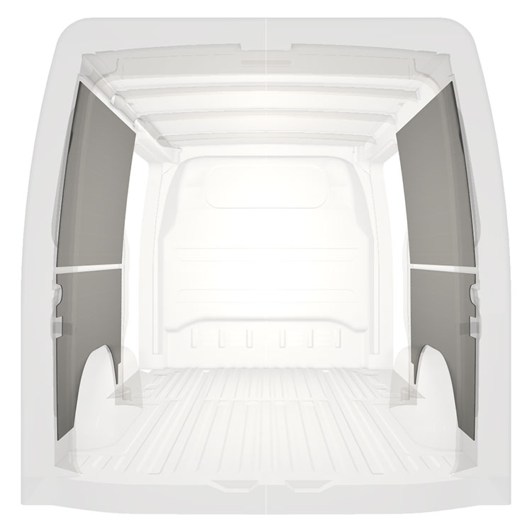 Kevyt valmiiksi leikattu sisäseinien paneeliverhous Mercedes Sprinter, jossa on kaksoissivuovet. Verhouspaneelimme luovat valoisan ja miellyttävän työympäristön, ja ne on helppo pyyhkiä puhtaaksi.