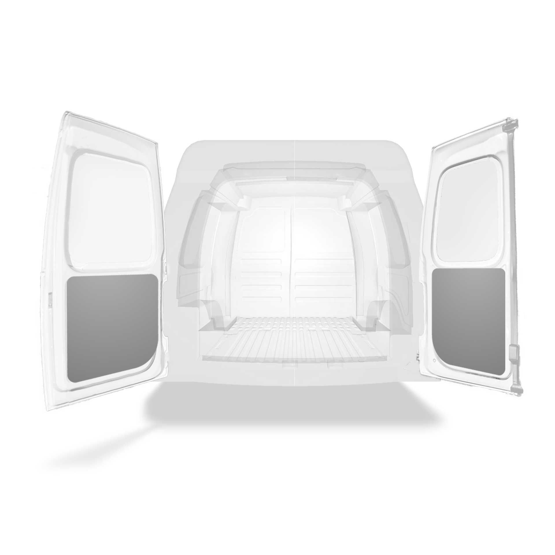 Kevyt takaoven alaosan paneeliverhous Volkswagen Caddy / Caddy Maxi, jossa on kaksoisovet. Oviverhoukset on suunniteltu antamaan sisäpuolelle ammattimainen ilme, ne suojaavat autoa ja on helppo pyyhkiä puhtaaksi.