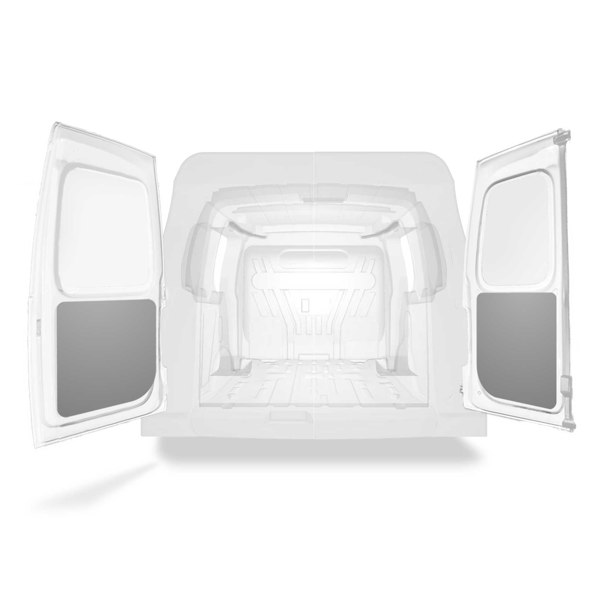 Kevyt takaoven alaosan paneeliverhous Ford Transit Connect, jossa on kaksoisovet. Oviverhoukset on suunniteltu antamaan sisäpuolelle ammattimainen ilme, ne suojaavat autoa ja on helppo pyyhkiä puhtaaksi.