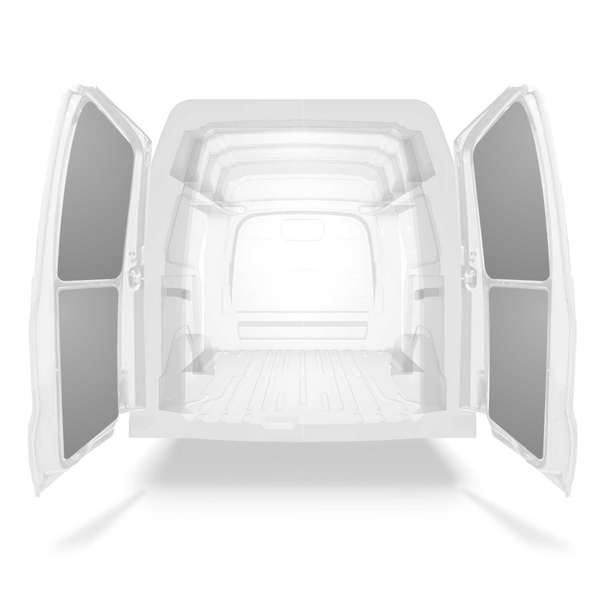 Kevyt takaoven paneeliverhous Ford Transit Custom, jossa on kaksoisovet. Oviverhoukset on suunniteltu antamaan sisäpuolelle ammattimainen ilme, ne suojaavat autoa ja on helppo pyyhkiä puhtaaksi.