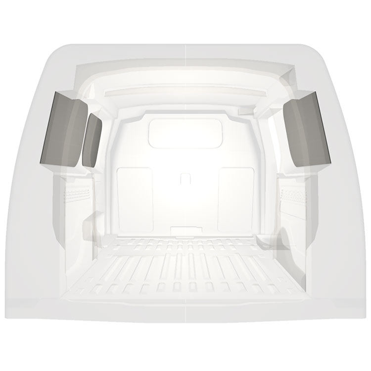 Kevyt sisäseinien paneeliverhous Berlingo/Partner/Combo 19-, jossa on sivuovi oikealla. Verhouspaneelimme luovat valoisan ja miellyttävän työympäristön, ja ne on helppo pyyhkiä puhtaaksi.