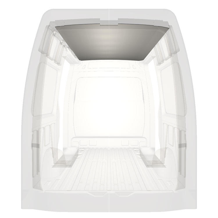 Kevyt kattoverhous Mercedes Sprinter. Verhouspaneelimme antavat sisätiloille valoisan ja ammattimaisen viimeistelyn sekä miellyttävän työympäristön.
