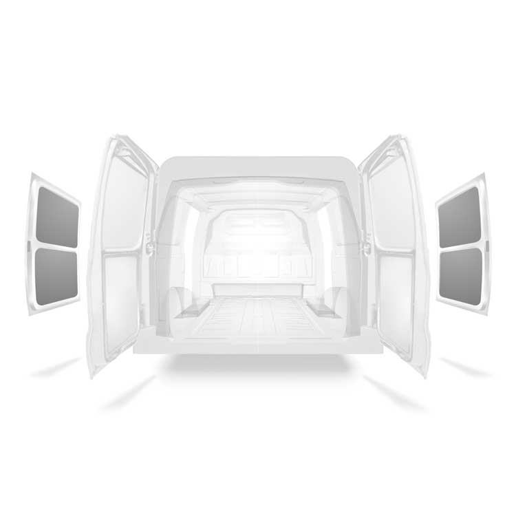 Tämä kevyt sivuoven paneeliverhous on tarkoitettu Mercedes Vito, joissa on kaksoissivuovet. Kaikki verhousmateriaalit on helppo pyyhkiä puhtaaksi ja ne luovat valoisan työympäristön.