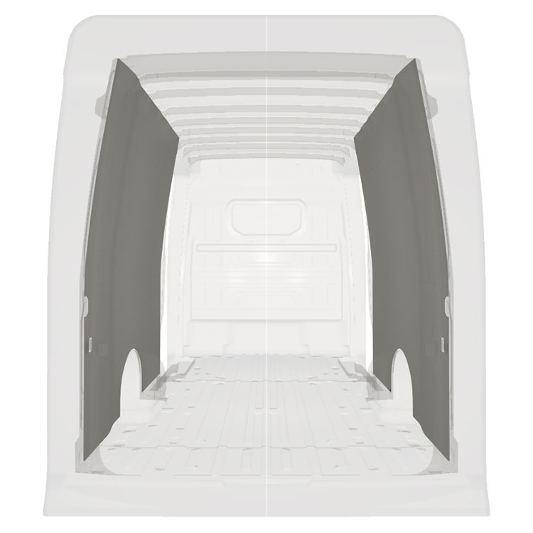 Kevyt sisäseinien kokopaneeliverhous Volkswagen Crafter / MAN TGE , jossa on kaksoissivuovet. Verhouspaneelimme luovat valoisan ja miellyttävän työympäristön, ja ne on helppo pyyhkiä puhtaaksi.