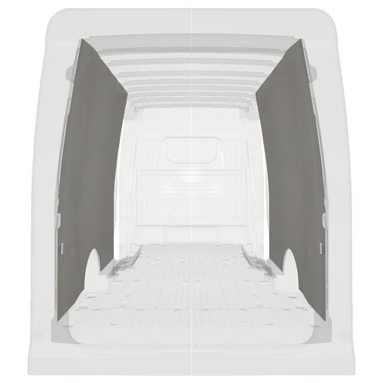 Kevyt sisäseinien kokopaneeliverhous Volkswagen Crafter / MAN TGE , jossa on kaksoissivuovet. Verhouspaneelimme luovat valoisan ja miellyttävän työympäristön, ja ne on helppo pyyhkiä puhtaaksi.