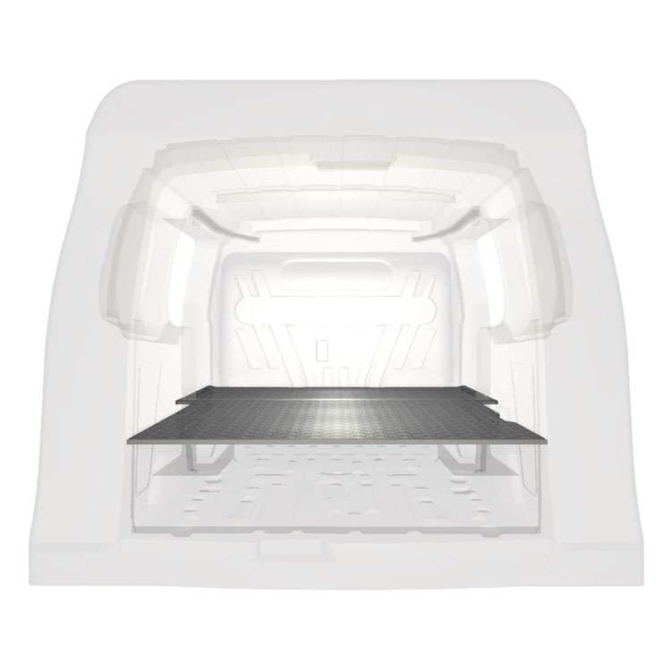 Tuplalattia Ford Connect L2 2016-. Lattia on suunniteltu sopimaan erikoispitkälle laatikkoratkaisulle, jossa yksi laatikko 486x1296x270 ja yksi 648x1296x270 tulevat ulos takaovista ja yksi 486x1296x270 laatikosto tulee ulos sivuovesta.