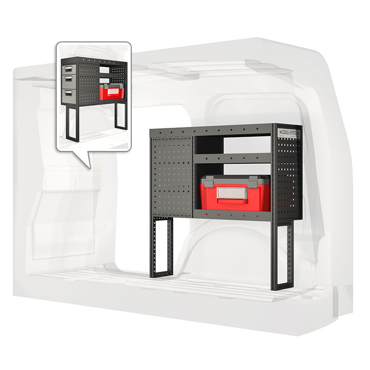 Kaluste-ehdotelmat on suunniteltu sopimaan optimaalisesti ajoneuvoon niin, että kaluste on sekä mahdollisimman toimiva että turvallinen. Kaluste-ehdotelmat on kehitetty ammattikäyttöön täyttämään eri liiketoiminta-alueiden tarpeet huoltotehtävissä. Kaikki hyllyt on varustettu kumimatoilla ja laatikot pitävät sisällään vaahtomuovilevyt. Kaluste-ehdotelmat pitävät sisällään myös kaikki asennustarvikkeet.