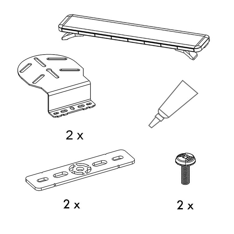 Kit comprising of one light bar and a complete set of brackets for installation directly to the vehicle OEM fix points. By utilizing the integrated fix points, no unnecessary holes have to be drilled to the vehicle body, eliminating the risk for corrossion and protecting the residual value of the vehicle.
