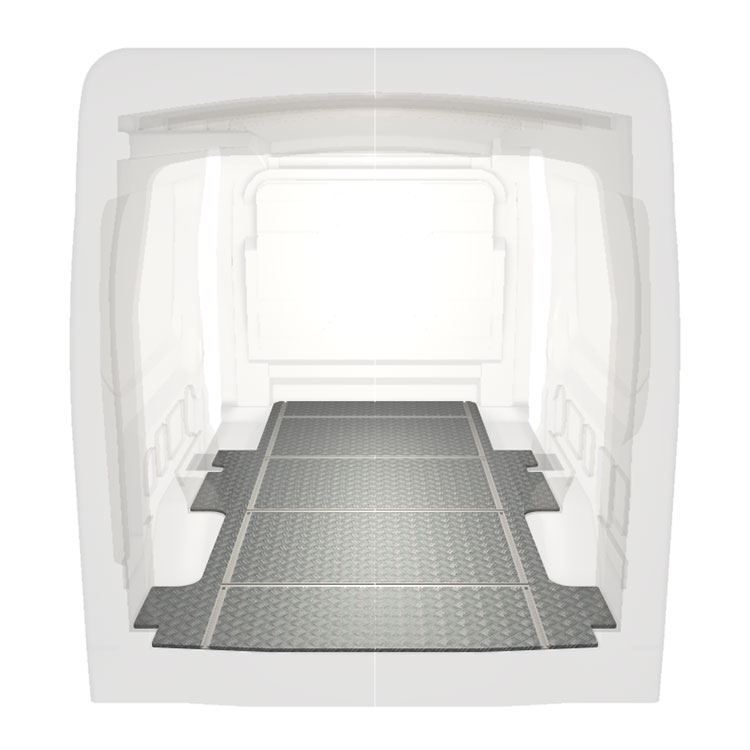 Kevyissä ja kestävissä Ford Transit tarkoitetuissa lattioissa on luistamaton alumiinikulutuspinta ja kuormakiskot (pitkittäiset ja poikittaiset) kalusteiden ja muiden lisävarusteiden turvallista ja nopeaa asennusta varten.