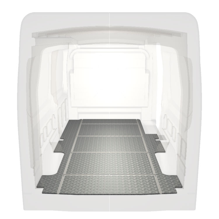 Kevyissä ja kestävissä Ford Transit tarkoitetuissa lattioissa on luistamaton alumiinikulutuspinta ja kuormakiskot (pitkittäiset ja poikittaiset) kalusteiden ja muiden lisävarusteiden turvallista ja nopeaa asennusta varten.