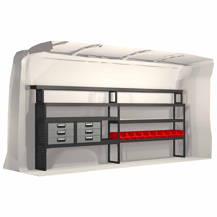 Kaluste-ehdotelmat on suunniteltu sopimaan optimaalisesti ajoneuvoon niin, että kaluste on sekä mahdollisimman toimiva että turvallinen. Kaluste-ehdotelmat on kehitetty ammattikäyttöön täyttämään eri liiketoiminta-alueiden tarpeet huoltotehtävissä. Kaikki hyllyt on varustettu kumimatoilla ja laatikot pitävät sisällään vaahtomuovilevyt. Kaluste-ehdotelmat pitävät sisällään myös kaikki asennustarvikkeet.