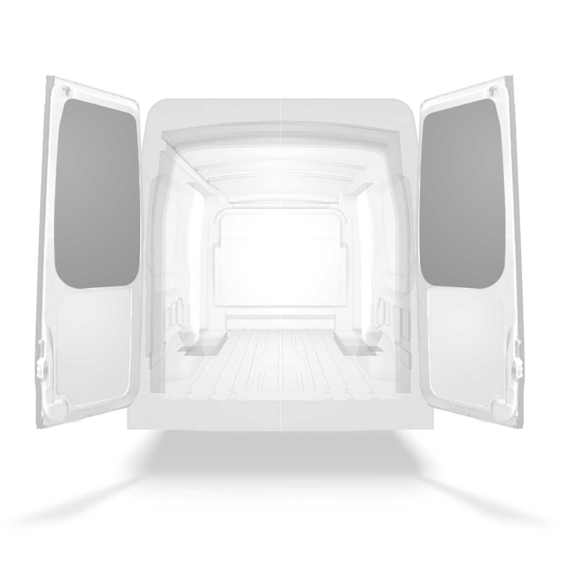 Kevyt takaoven yläosan paneeliverhous Ford Transit, jossa on kaksoisovet. Oviverhoukset on suunniteltu antamaan sisäpuolelle ammattimainen ilme, ne suojaavat autoa ja on helppo pyyhkiä puhtaaksi.