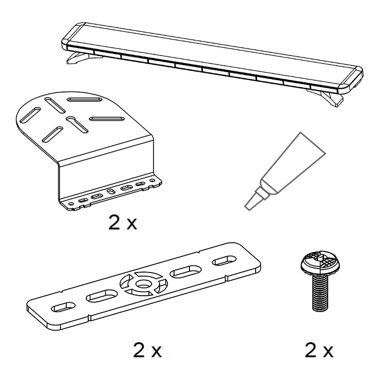 Sarja sisältää valotelineen ja täydellisen kiinnikesarjan, jolla telineen voi kiinnittää ajoneuvon alkuperäisiin kiinnityspisteisiin. Integroitujen kiinnityspisteiden ansiosta ajoneuvon runkoon ei tarvitse porata turhia reikiä, mikä eliminoi korroosionriskin ja suojaa ajoneuvon jäännösarvoa.