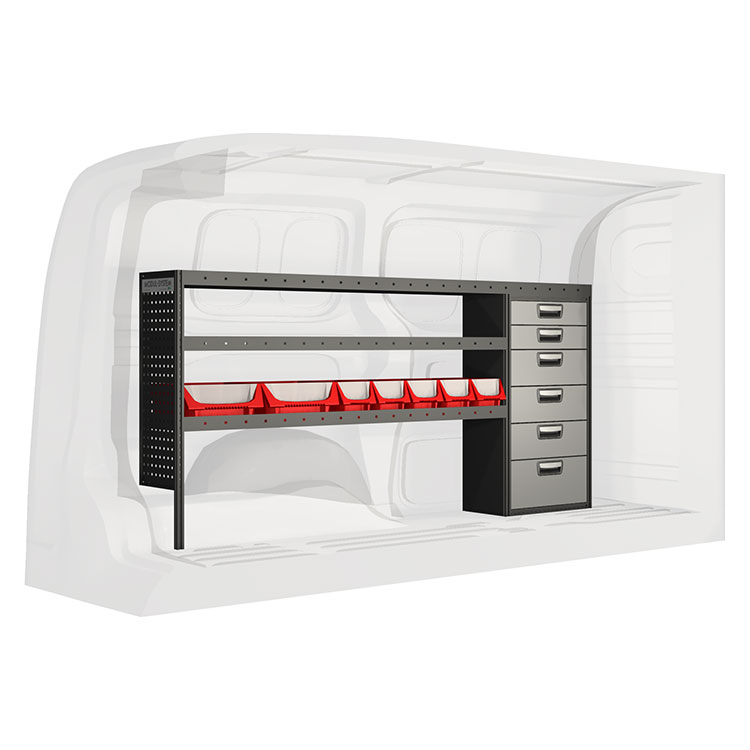 Kaluste-ehdotelmat on suunniteltu sopimaan optimaalisesti ajoneuvoon niin, että kaluste on sekä mahdollisimman toimiva että turvallinen. Kaluste-ehdotelmat on kehitetty ammattikäyttöön täyttämään eri liiketoiminta-alueiden tarpeet huoltotehtävissä. Kaikki hyllyt on varustettu kumimatoilla ja laatikot pitävät sisällään vaahtomuovilevyt.