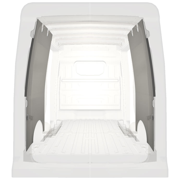 Kevyt sisäseinien kokopaneeliverhous Volkswagen Crafter / MAN TGE , jossa on kaksoissivuovet. Verhouspaneelimme luovat valoisan ja miellyttävän työympäristön, ja ne on helppo pyyhkiä puhtaaksi.