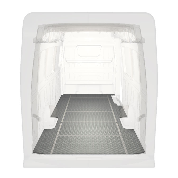 Kevyissä ja kestävissä Volkswagen Crafter / MAN TGE tarkoitetuissa lattioissa on luistamaton alumiinikulutuspinta ja kuormakiskot (pitkittäiset ja poikittaiset) kalusteiden ja muiden lisävarusteiden turvallista ja nopeaa asennusta varten.