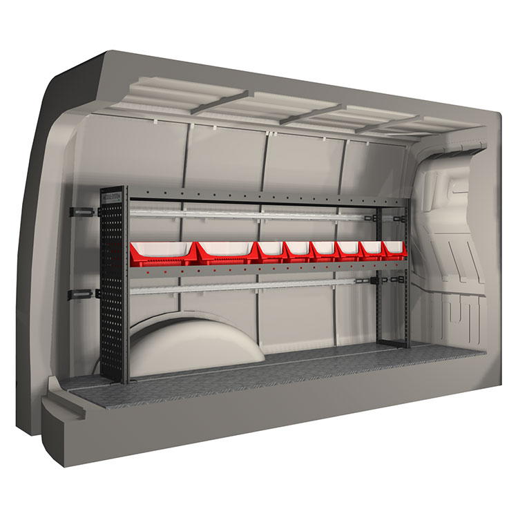 The racking has been specially designed to ensure the optimum fit to the vehicle, as well as the best possible functionality and safety. It has been developed for professional use, is flexible and is intended for service jobs in various types of business. All shelves are equipped with rubber mats, and all drawers with foam plastic liners. Assembly material is included.
