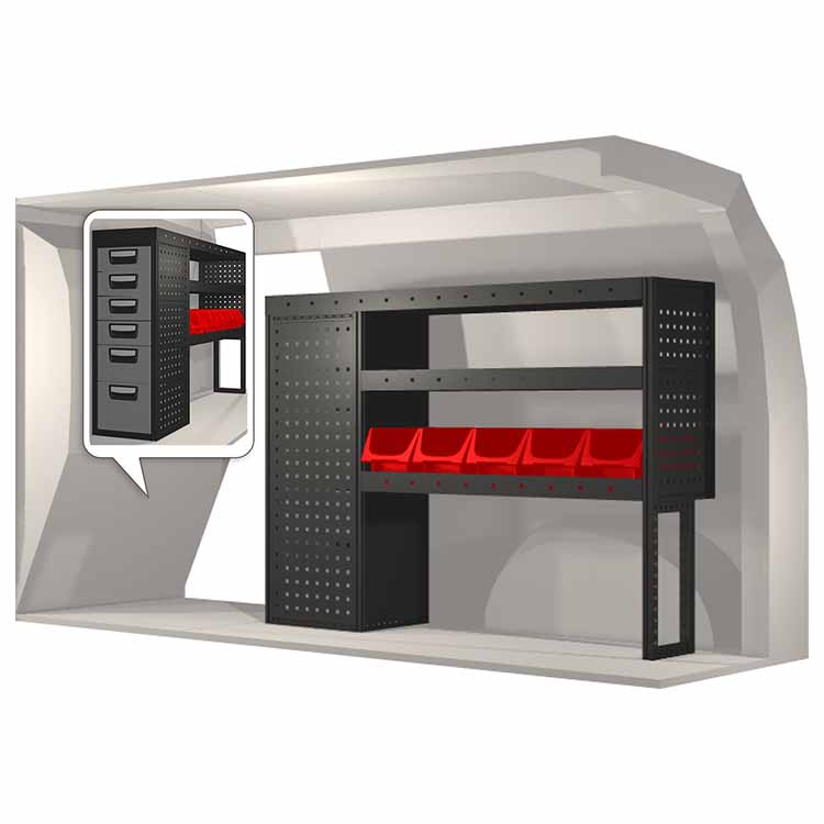 Kaluste-ehdotelmat on suunniteltu sopimaan optimaalisesti ajoneuvoon niin, että kaluste on sekä mahdollisimman toimiva että turvallinen. Kaluste-ehdotelmat on kehitetty ammattikäyttöön täyttämään eri liiketoiminta-alueiden tarpeet huoltotehtävissä. Kaikki hyllyt on varustettu kumimatoilla ja laatikot pitävät sisällään vaahtomuovilevyt. Kaluste-ehdotelmat pitävät sisällään myös kaikki asennustarvikkeet.