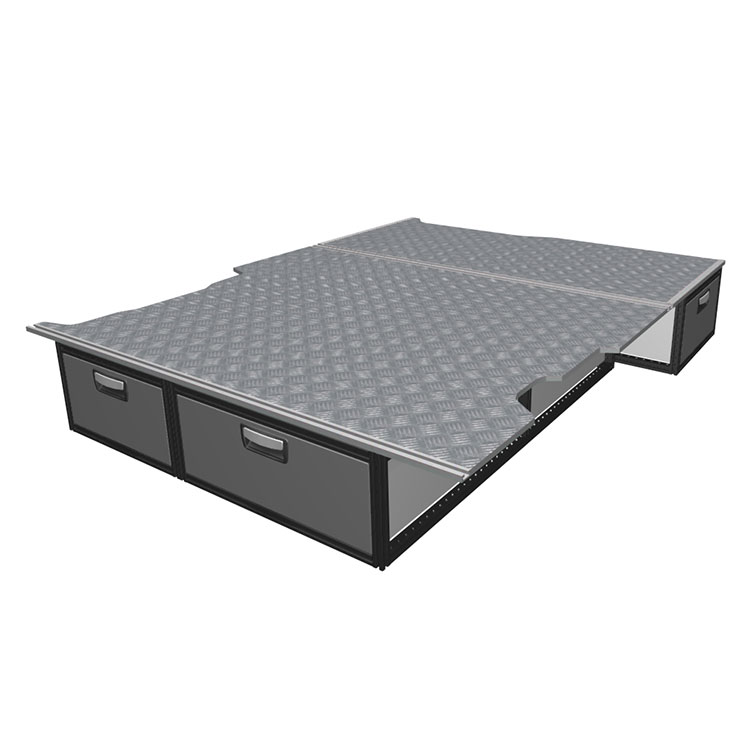 The kit is designed to be fitted on top of a wooden floor. The double floor is equipped with rails for easy installation of vehicle racking, and edging strips for a nice finish.