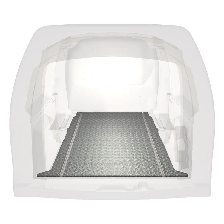 Kevyissä ja kestävissä Mercedes Citan / Renault Kangoo tarkoitetuissa erikoispitkissä lattioissa on luistamaton alumiinikulutuspinta ja kuormakiskot (pitkittäiset) kalusteiden ja muiden lisävarusteiden turvallista ja nopeaa asennusta varten.