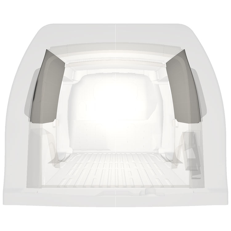 Kevyt sisäseinien kokopaneeliverhous Mercedes Citan / Renault Kangoo, jossa on kaksoissivuovet. Verhouspaneelimme luovat valoisan ja miellyttävän työympäristön, ja ne on helppo pyyhkiä puhtaaksi.