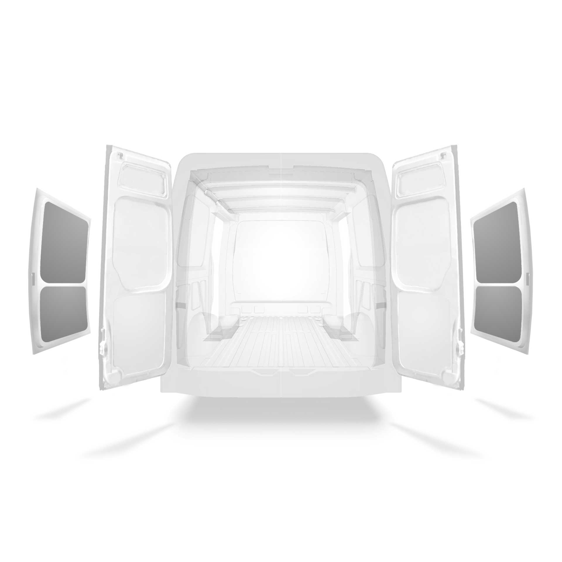 Tämä kevyt sivuoven paneeliverhous on tarkoitettu Mercedes Sprinter, joissa on kaksoissivuovet. Kaikki verhousmateriaalit on helppo pyyhkiä puhtaaksi ja ne luovat valoisan työympäristön.