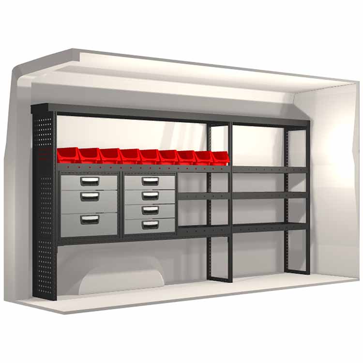 Kaluste-ehdotelmat on suunniteltu sopimaan optimaalisesti ajoneuvoon niin, että kaluste on sekä mahdollisimman toimiva että turvallinen. Kaluste-ehdotelmat on kehitetty ammattikäyttöön täyttämään eri liiketoiminta-alueiden tarpeet huoltotehtävissä. Kaikki hyllyt on varustettu kumimatoilla ja laatikot pitävät sisällään vaahtomuovilevyt. Kaluste-ehdotelmat pitävät sisällään myös kaikki asennustarvikkeet.