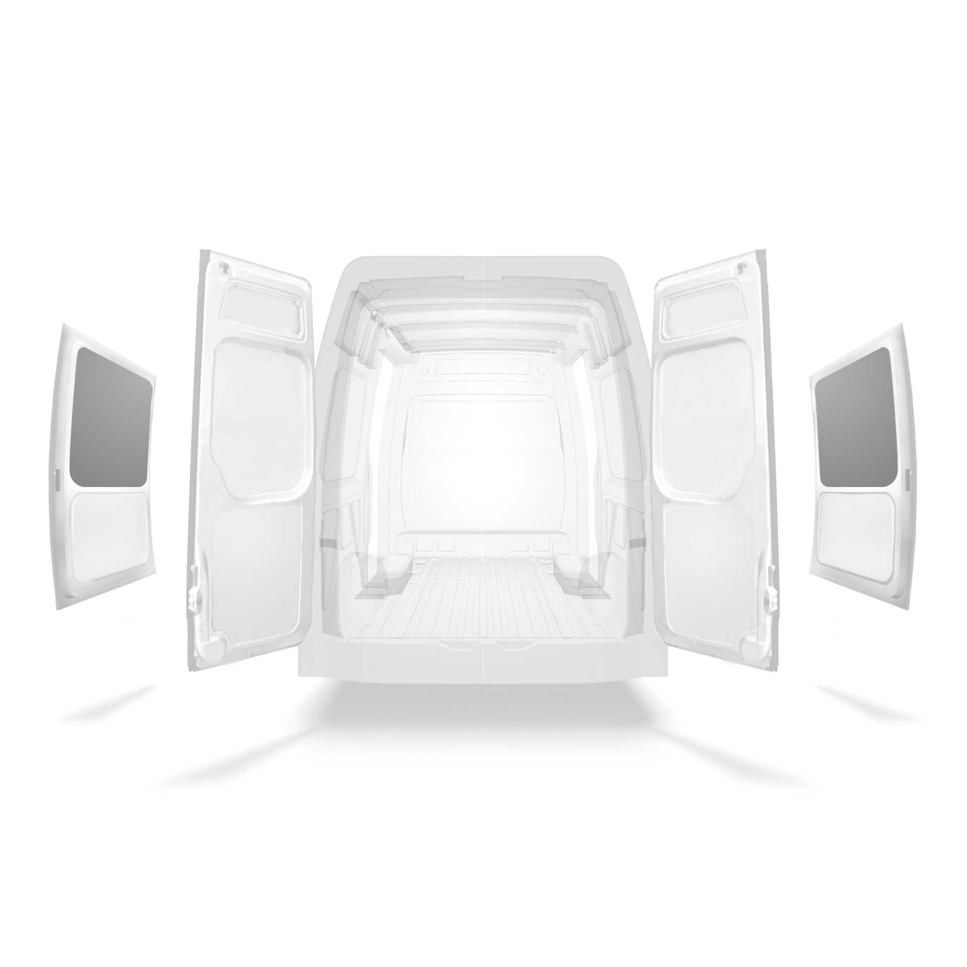 Kevyt sivuoven yläosan verhous Mercedes Sprinter, jossa on kaksoissivuovet. Verhous vähentää sisätilojen kulumista, ja auttaa säilyttämään auton jäännösarvon.