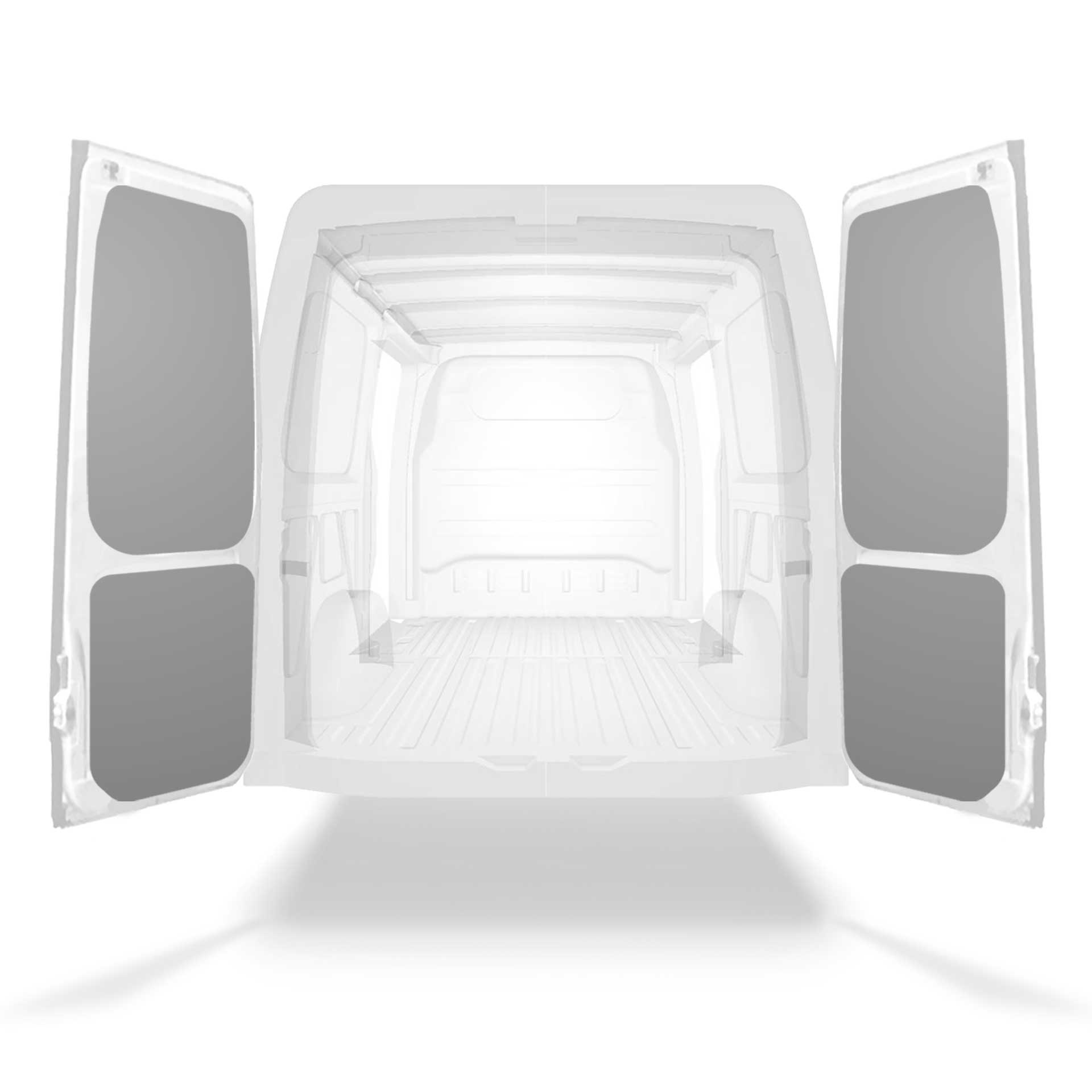 Kevyt takaoven paneeliverhous Mercedes Sprinter, jossa on kaksoisovet. Oviverhoukset on suunniteltu antamaan sisäpuolelle ammattimainen ilme, ne suojaavat autoa ja on helppo pyyhkiä puhtaaksi.