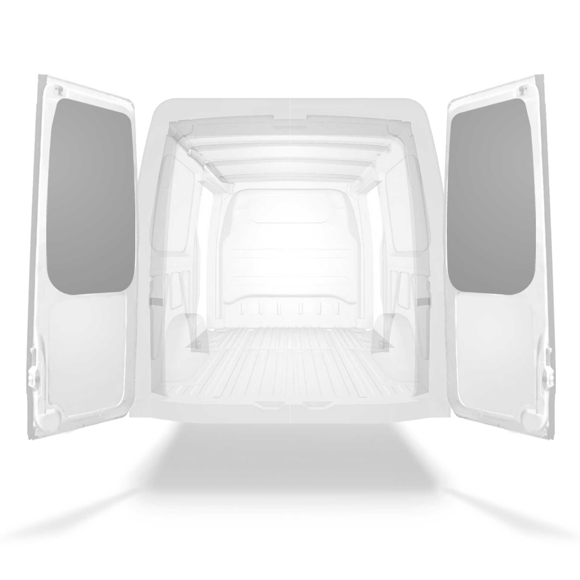 Kevyt takaoven yläosan paneeliverhous Mercedes Sprinter, jossa on kaksoisovet. Oviverhoukset on suunniteltu antamaan sisäpuolelle ammattimainen ilme, ne suojaavat autoa ja on helppo pyyhkiä puhtaaksi.