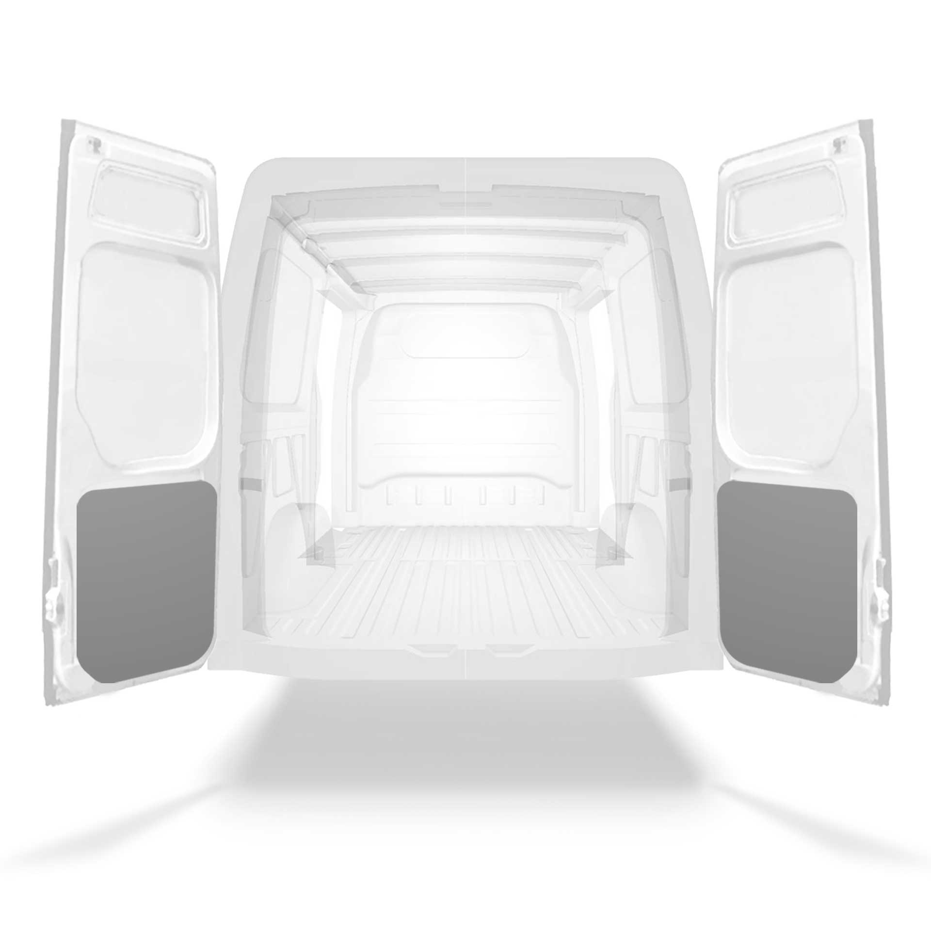 Kevyt takaoven alaosan paneeliverhous Mercedes Sprinter, jossa on kaksoisovet. Oviverhoukset on suunniteltu antamaan sisäpuolelle ammattimainen ilme, ne suojaavat autoa ja on helppo pyyhkiä puhtaaksi.