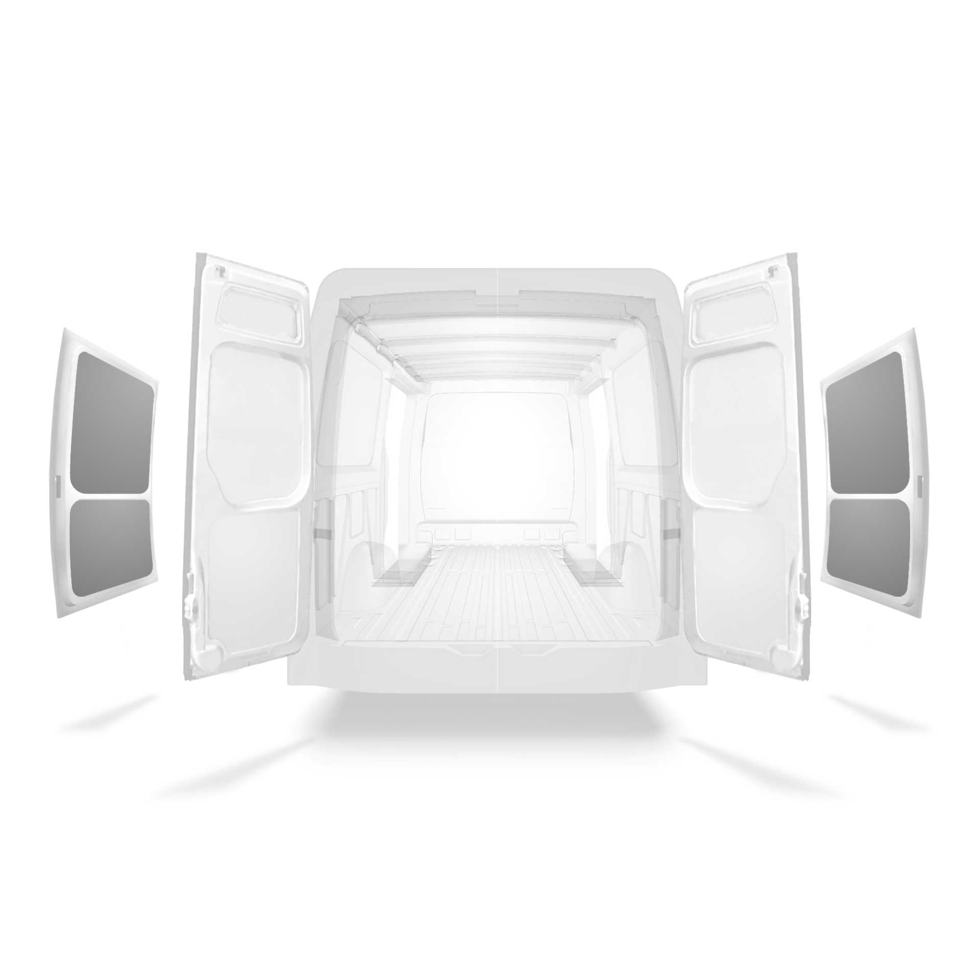 Tämä kevyt sivuoven paneeliverhous on tarkoitettu Mercedes Sprinter, joissa on kaksoissivuovet. Kaikki verhousmateriaalit on helppo pyyhkiä puhtaaksi ja ne luovat valoisan työympäristön.