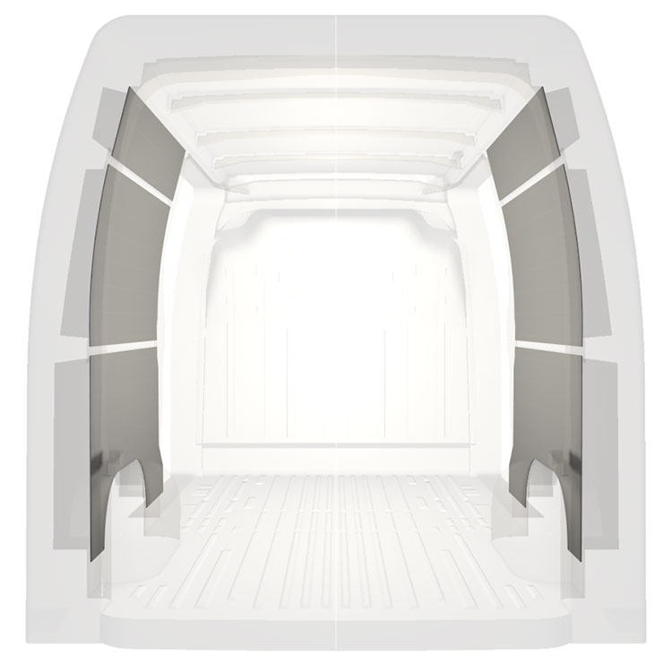 Kevyt valmiiksi leikattu sisäseinien paneeliverhous Renault Master / Opel Movano / Nissan NV400, jossa on kaksoissivuovet. Verhouspaneelimme luovat valoisan ja miellyttävän työympäristön, ja ne on helppo pyyhkiä puhtaaksi.