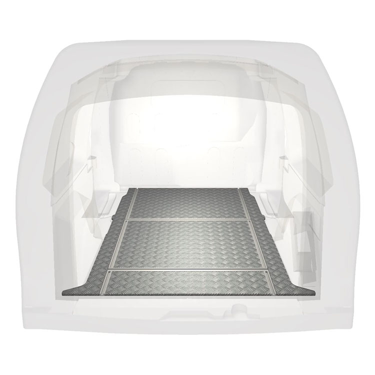 Kevyissä ja kestävissä Mercedes Citan / Renault Kangoo tarkoitetuissa lattioissa on luistamaton alumiinikulutuspinta ja kuormakiskot (pitkittäiset ja poikittaiset) kalusteiden ja muiden lisävarusteiden turvallista ja nopeaa asennusta varten.